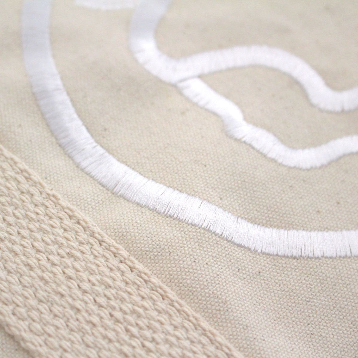 排水による地球環境の負担を避けるため、アイボリー色はあえて染色せずに生成り仕上げにしました。